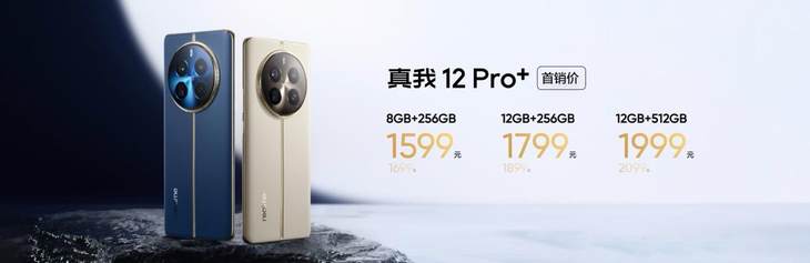 真我12 Pro+共带来三个版本,8GB+256GB首销价1599元,12GB +256GB首销价1799元,12GB +512GB首销价1999元!