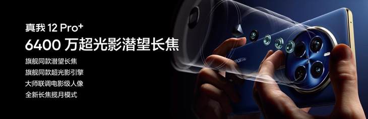 真我12 Pro+带来全新大师奢表设计,搭载同档独有超光影潜望长焦,在设计、影像、品质上全面颠覆中端。