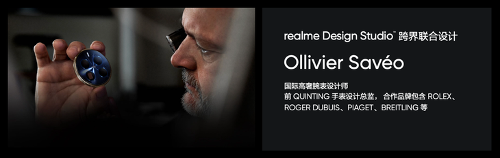 真我携手国际知名奢表设计大师Ollivier Savéo,以大师设计颠覆中端。继劳力士、罗杰杜比、伯爵等品牌奢表作品之后,Ollivier Savéo首次跨界手机工业设计,复刻奢表精密之美,打造全新大师奢表设计。
