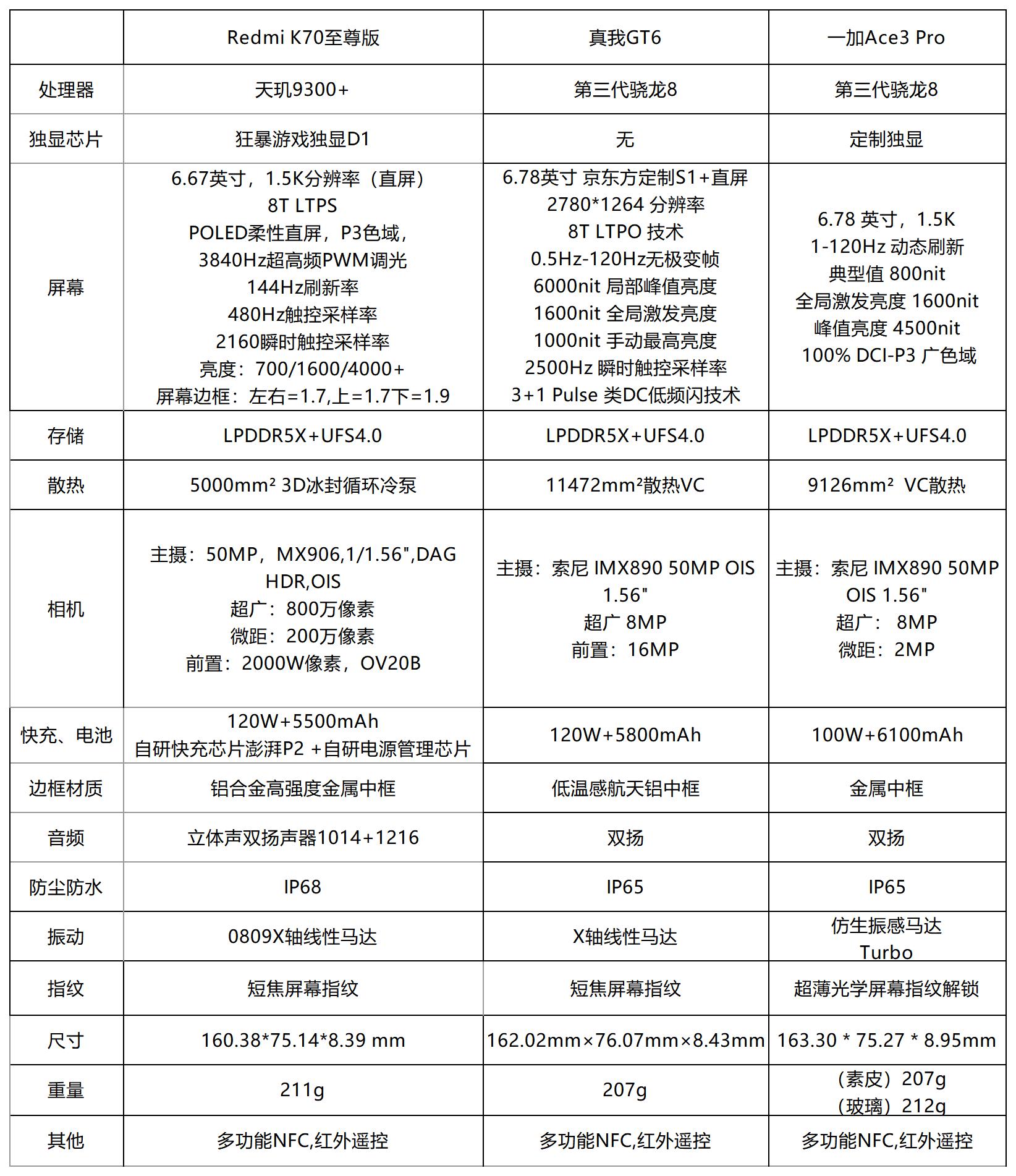 谁是王者?Redmi K70至尊版、真我GT6、一加Ace3 Pro大对比
